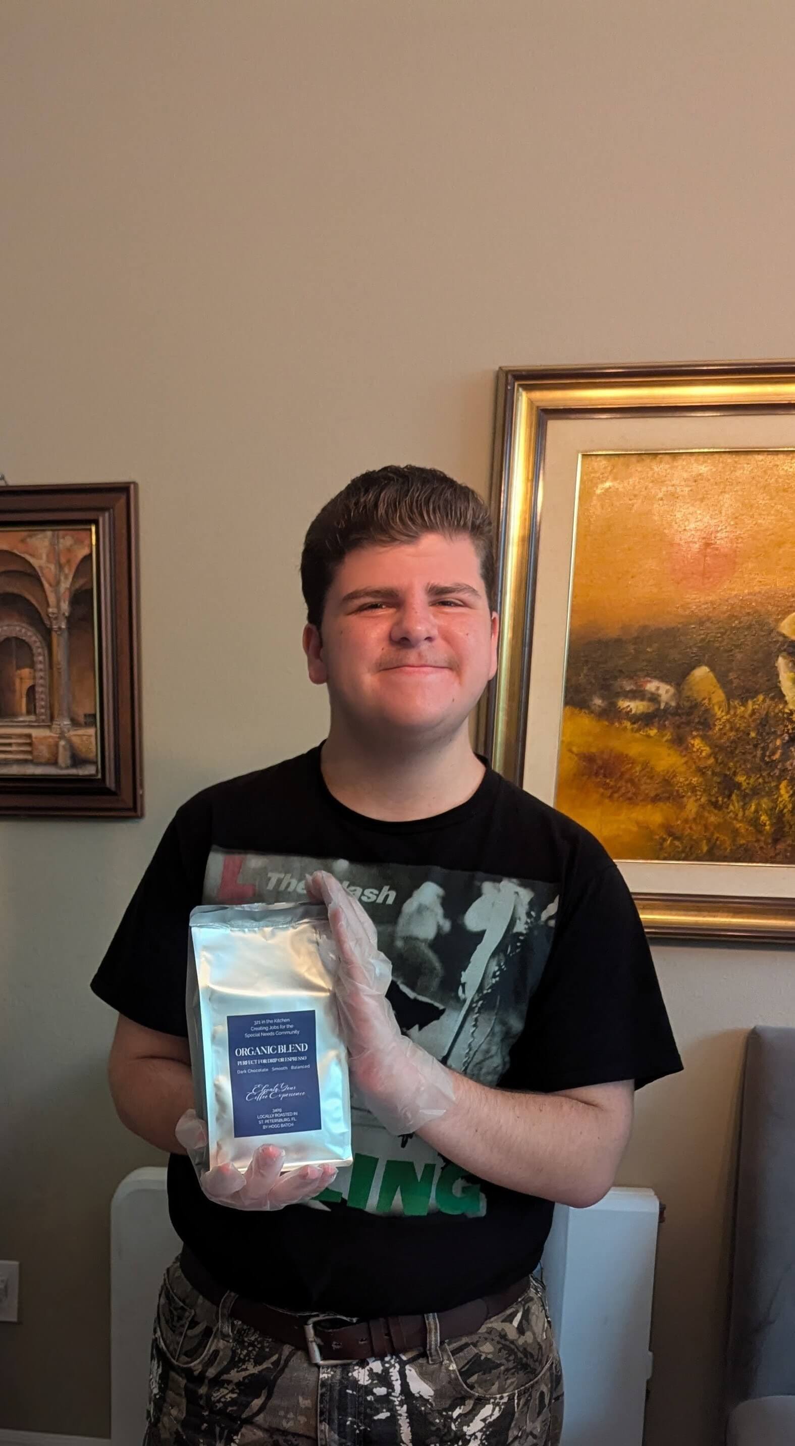 Sourced from Bolivia, Honduras, and Timor, this 12 oz, whole bean, organic blend is bold yet beautifully balanced. Crafted for both espresso and drip brewing, it features notes of rich dark chocolate and a smooth silky finish. It's a crowd favorite for coffee lovers who want both quality and purpose in their cup.